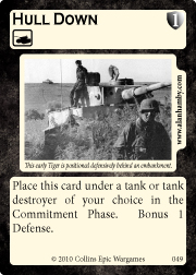 Once you have constructed your deck, you’ll choose four Unit Cards to keep as your starting hand, Shuffle your remaining Reserves, and draw three Command cards. Starting forces begin in your hand and the rest make up your Reserves. At this point the first Commitment Phase begins. You may commit up to your entire hand during any Commitment Phase, which effectively brings units into the Battle Area and into engagement range. Committed units come into play either on the frontline or the rearline, as indicated by the Unit Card under the Unit's Title. Frontline Units typically include infantry, tanks, short range guns, etc., while Rear Line Units may include Artillery or Self-Propelled Guns. Aircraft are not committed to a line, but rather, come into play for a set number of turns based on their actual fuel capacity. Multiple lines provide a sense of depth and allow for breakthrough actions with aircraft screaming overhead.
